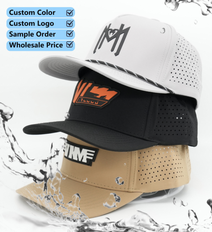 Custom Logo OEM Laser Cut Two Tone 5 Panel Golf Hats Cap